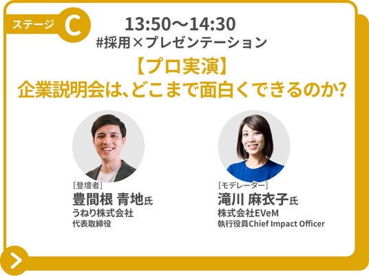 2. ステージC:【プロ実演】企業説明会は、どこまで面白くできるのか?~資料作成とプレゼンのプロに聞く、心を動かすプレゼンの極意~